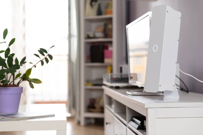 Да. Благодаря тому, что УФ-лампа закрыта прочным материалом корпуса прибора, излучение не предоставляет вреда присутствующим в помещении во время работы очистителя — ни детям, ни взрослым, ни домашним животным, ни комнатным растениям.
